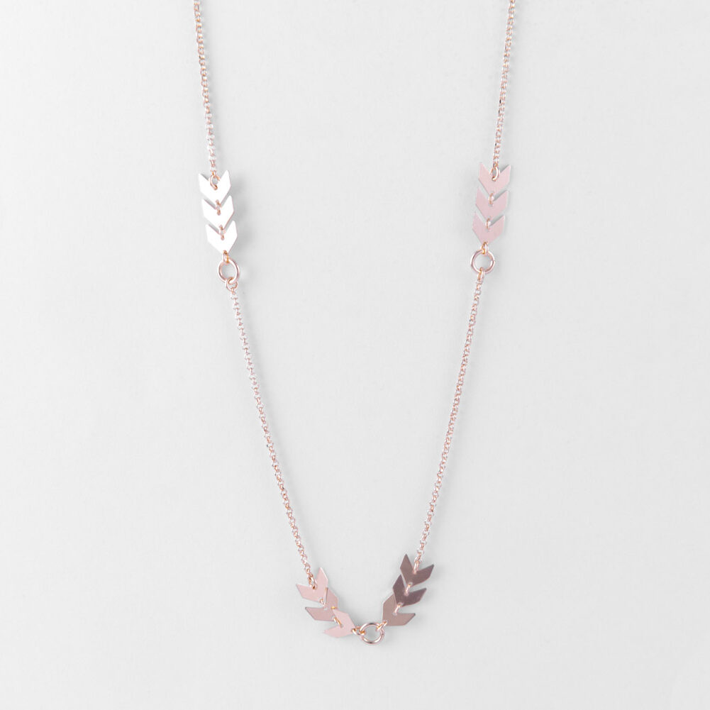 Collana a girocollo con motivo centrale e laterale a freccia in colore gold.