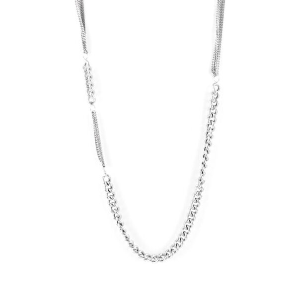 Realizzata in Argento 925 questa collana è caratterizzata da un ampio motivo centrale con lavorazione a grumetta.